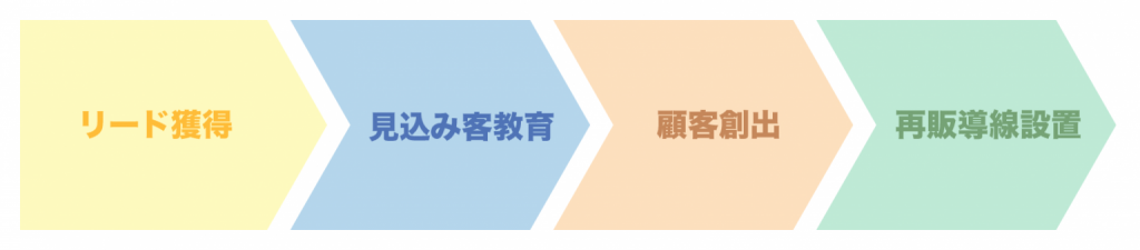 一度事業上の接点を持った顧客は常にそのマーケティングプールの中に入った状態になります。優先度の上下はあれど見込み顧客の予備軍を獲得するステップ。